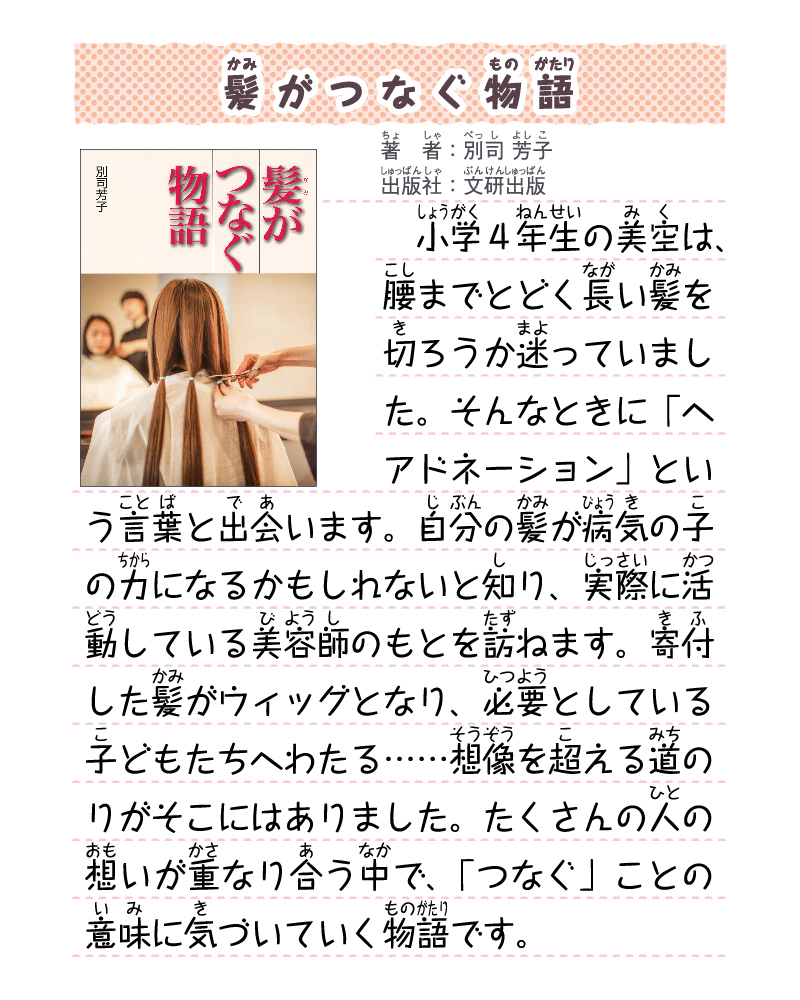 - オススメ図書「髪がつなぐ物語」を追加しました。new